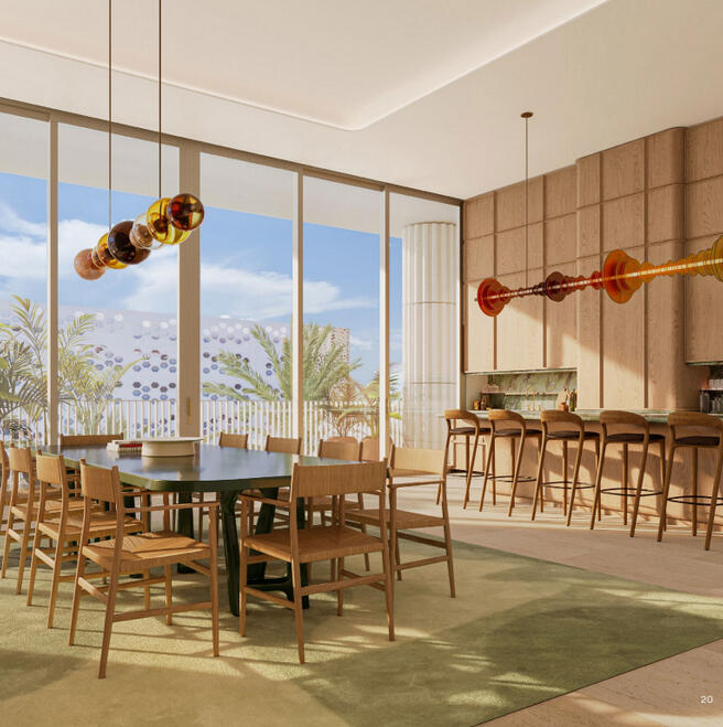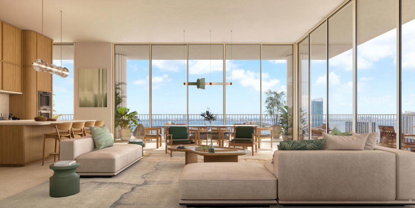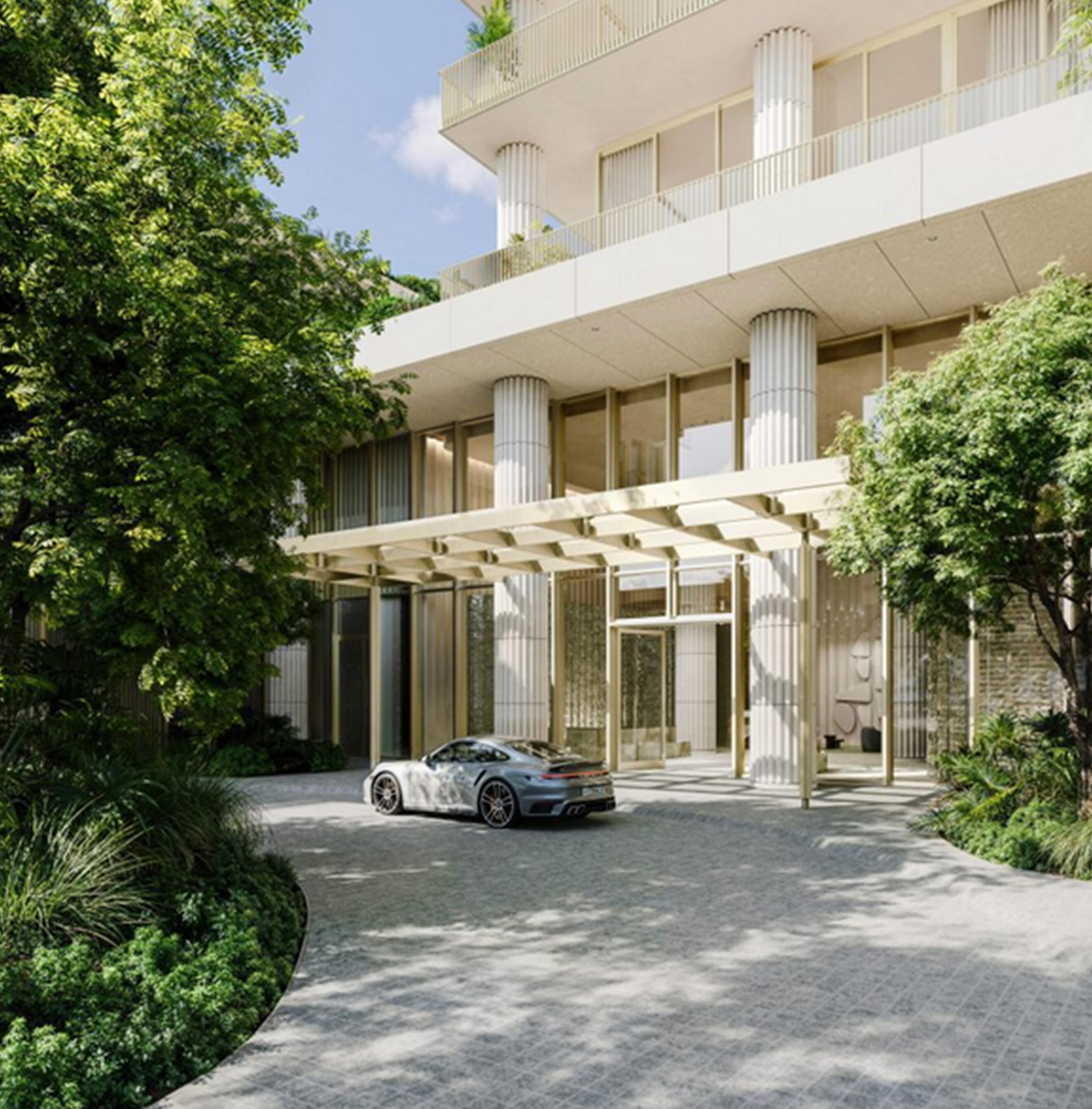 The building is defined by its custom ceramic column façade, meticulously designed to capture and reflect Miami’s natural light, creating rhythm, depth, and a timeless architectural presence. Floor-to-ceiling windows with elegant, bespoke frames, expansive wraparound terraces, and a curated palette of refined natural materials blur the boundary between indoors and out. Light, proportion, and design converge to shape seamless living spaces and an elevated, enduring way of life.
