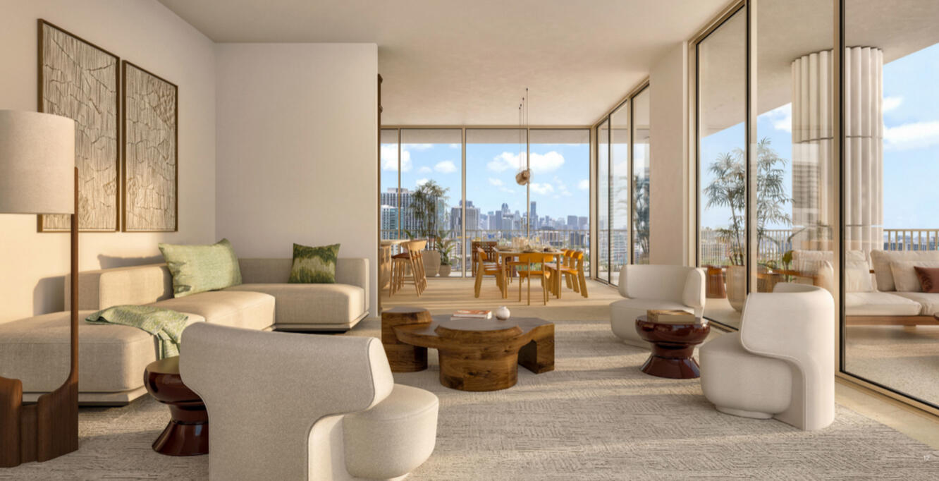 All residences at Miami Design Residences feature thoughtfully designed interiors, expansive layouts filled with natural light, private terraces, floor-to-ceiling windows, premium finishes, and refined kitchens, creating a seamless balance between contemporary design and everyday luxury.