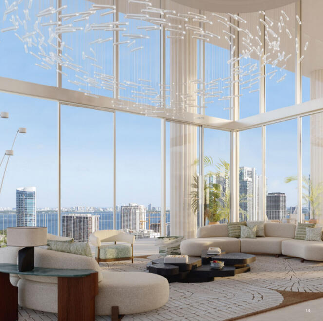 The building is defined by its custom ceramic column façade, meticulously designed to capture and reflect Miami’s natural light, creating rhythm, depth, and a timeless architectural presence. Floor-to-ceiling windows with elegant, bespoke frames, expansive wraparound terraces, and a curated palette of refined natural materials blur the boundary between indoors and out. Light, proportion, and design converge to shape seamless living spaces and an elevated, enduring way of life.